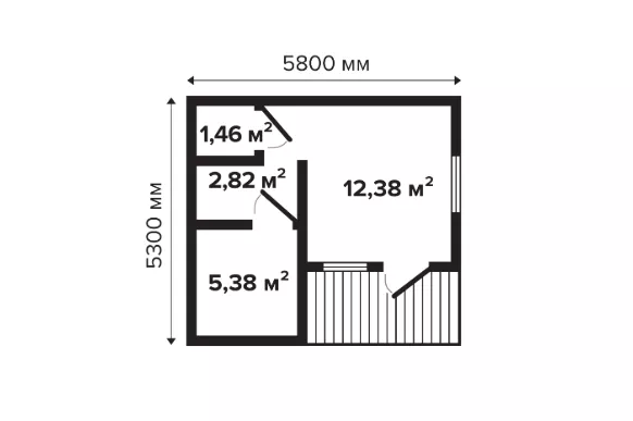 Компактная баня размером 5,3 х 5,8 метров с продуманной планировкой создаёт полноценное пространство для отдыха на даче: парная, уютная комната отдыха и отдельный санузел с помывочной собраны в одном тёплом и светлом домике. Такое решение легко вписывается даже в небольшой участок и позволяет быстро получить готовое место для настоящего расслабления.
