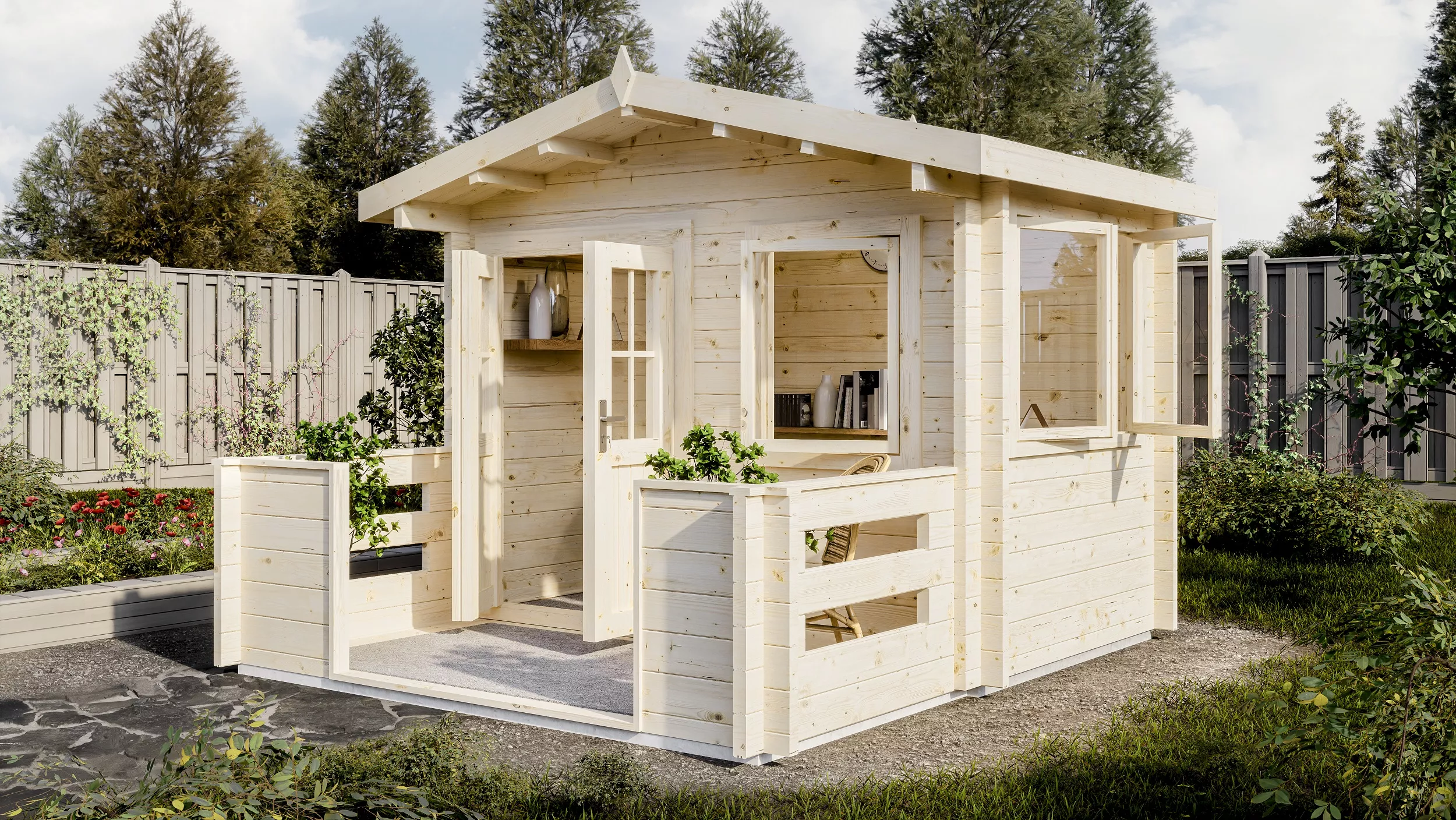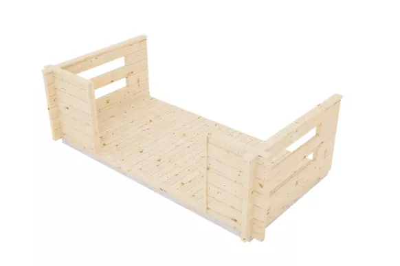 Подходит к садовым домам с длиной по центральному фасаду от 3 до 6 м. Конструктив ограждения с проветриванием и допуском солнечного света.